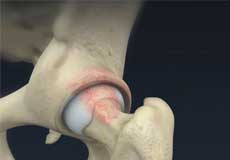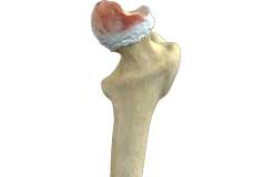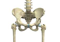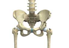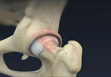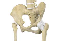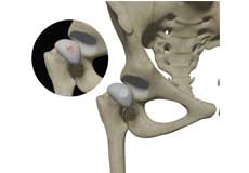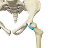 The hip is a ball and socket joint comprising of the femur (thigh bone) and the pelvic bone. The head of the femur (ball) articulates with a cavity (socket) called the acetabulum in the pelvic bone. To facilitate the smooth and frictionless movement of the hip joint, the articulating surfaces of the femur head and acetabulum are covered by spongy articular cartilage.