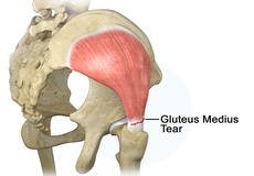 A gluteus medius tear is the partial or complete rupture of the gluteus medius muscle due to severe muscle strain.