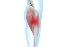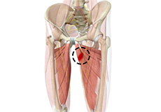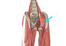 • Iliopsoas: This muscle is located in front of the hip joint and provides flexion. It is a deep muscle that originates from the lower back and pelvis and extends up to the inside surface of the upper part of the femur.