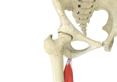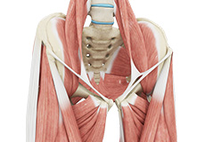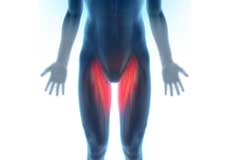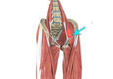 • Gluteals: These are the muscles that form the buttocks. There are three muscles (gluteus minimus, gluteus maximus, and gluteus medius) that attach to the back of the pelvis and insert into the greater trochanter of the femur.