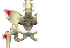 The hip joint consists of the femur (thighbone) and pelvic bone, which is made up of the fusion of three bones – the ischium, pubis, and ilium. The femur has two boney prominences close to the hip joint – the greater and lesser trochanters. Hip pointer is an injury or bruise to the iliac crest (curved upper border of the ilium) or greater trochanter, or the surrounding muscles or tissues.